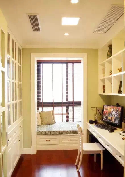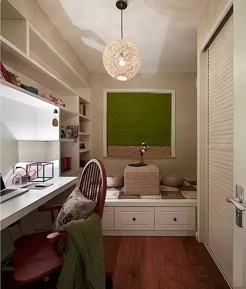 在书房用上榻榻米更能显现出一分恬静,主修效果也非常的好,个性简约。榻榻米装修书房最大的特点体现在日式的横拉门上,比用普通的推门节省了更大的空间,如今书房的榻榻米装修也是最近最流行的。