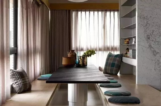 榻榻米餐厅一般在中国家庭应用的比较少,但是它绝对会是一个你不会后悔的设计,它会让累了一整天的你歇下来享受宁静带来的舒心。