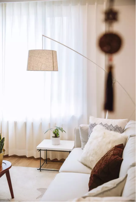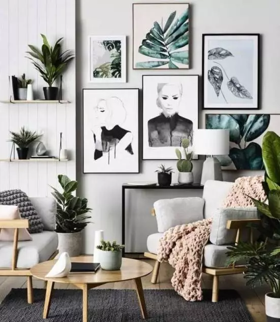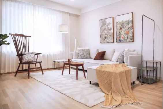 几何图案的抱枕,随意摆放的毛毯以及富有艺术感的装饰画,共同打破了纯白沙发带来的单调,既活跃了空间色彩,又呈现出了北欧风特有的随意自然。