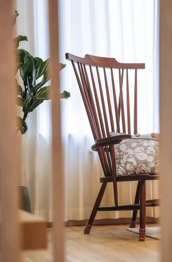小岛台前的木质座椅,兼具温润的触感与利落的线条,令人产生小憩片刻的欲望。