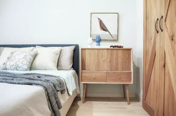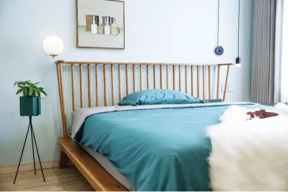 主卧风格清新质朴,营造一种零压力的自然感觉,很容易让身处其中的人心情平静下来。