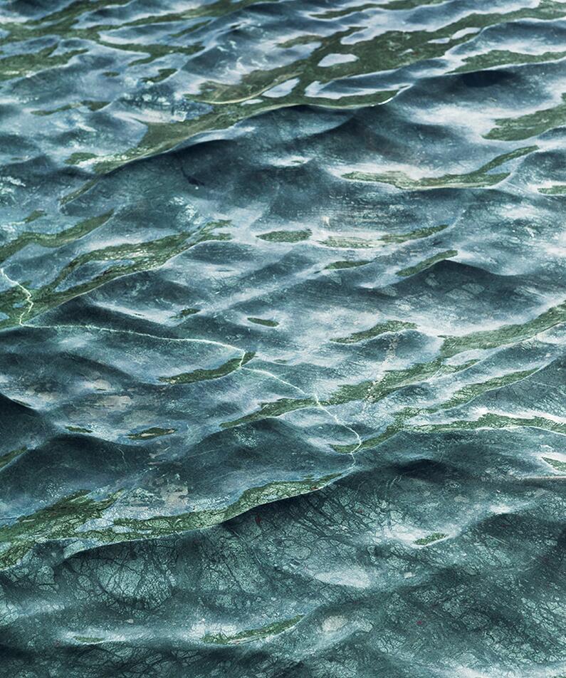 这件作品是「Liquid Marble」系列中的一件,用整片绿色大理石手工打磨而成的“液态大理石”,然后通过3D软件制作出来。