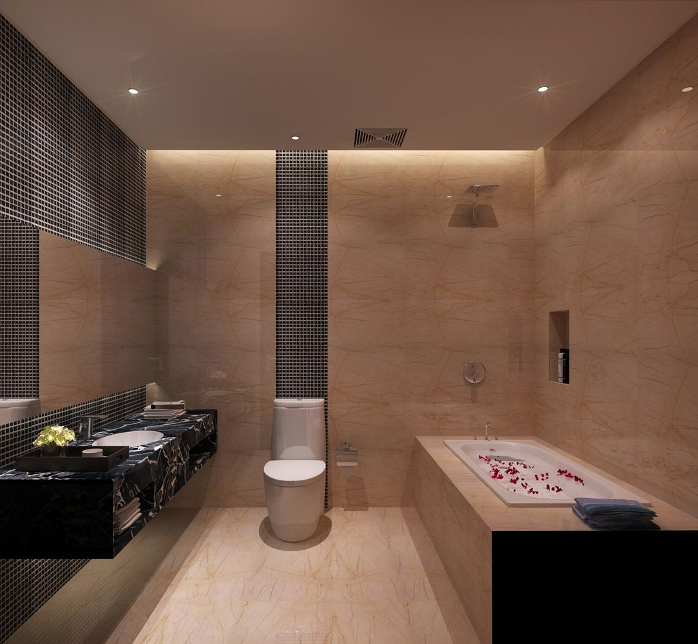 在防滑方面,大家可以选择带有凹凸纹路的地砖,这类地砖防水防滑。在选择地砖是最好不要选择黑色等颜色,因为卫生间空间本就比较小、黑色瓷砖会让空间显得狭小阴暗,而且容易忽略如头发一类的脏东西。铺设地砖前,卫生间地面需坡向地漏口,以防排水不畅。