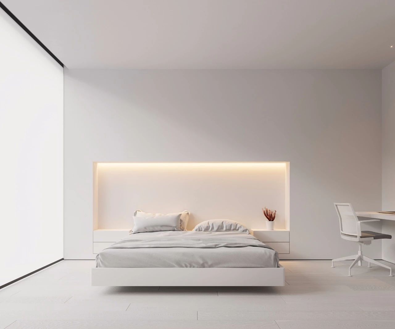 而与其他色彩相比,纯洁的白色似乎更能衬托极简的意境。