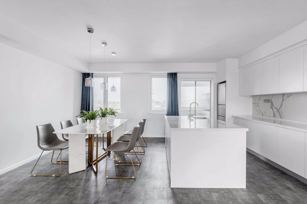 餐厅里采用白色和原木色的搭配,让温润自然的木质元素中和了大量极简白带来的清冷质感,看上去更加干净利落,令人倍感温馨。
